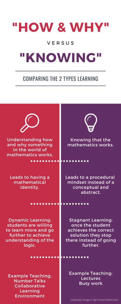 Core ideas: Knowing/understanding “how and why” something in the world (and in math and science) works is often more challenging but important than “knowing that” it works.