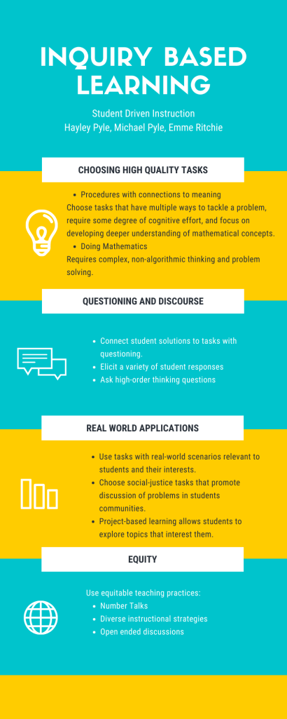 Inquiry-based instruction: You can guide students to explore math and science ideas through questions and (high cognitive demand) tasks with limited direct instruction.