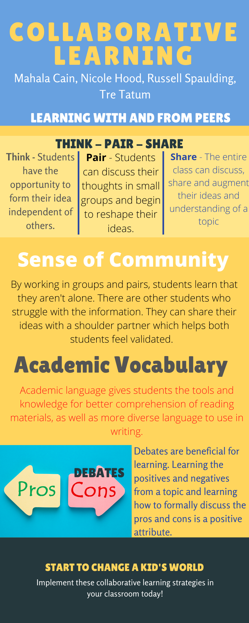 Collaborative learning: Students benefit from learning with and from their peers by sharing ideas and strategies in small groups and whole class discussions.