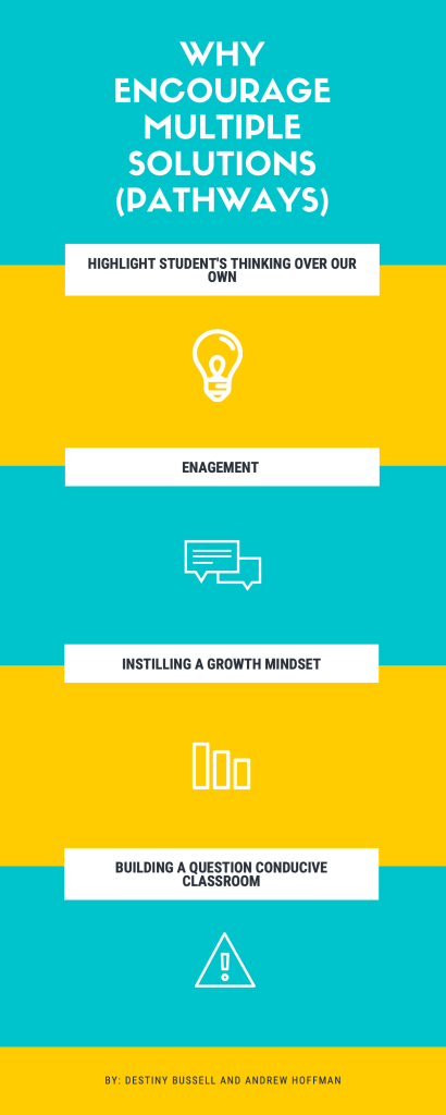 Multiple solutions or multiple solution strategies/representations/models: You can engage students with multiple approaches and representations/models for problems or questions generated by themselves and their peers to support deeper math and science learning.