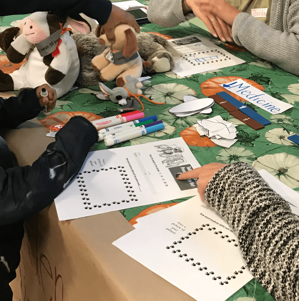 Children become a veterinarian and help write a prescription for one to five pet patients that vary in weight.